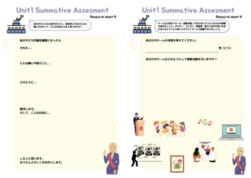 Unit1 政治は市民生活に影響する ユニットの概要リンク 選挙運動に向けたアウトプット リサーチをして、深めた上でいよいよ自分たちの考えた公約を伝えるための準備に入っていきました。自分たちのリサーチした内容と政党名が繋がるような名前をチームで考え…